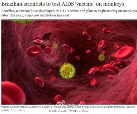 巴西研制成功抗艾滋病疫苗 可抑制HIV病毒传播