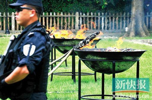 广东纪念虎门销烟177周年 毒品在虎门当场焚烧