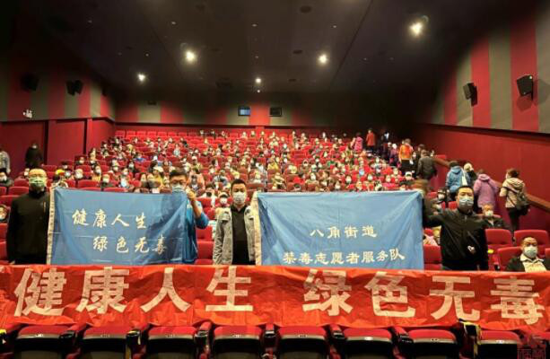 石景山区禁毒办充分发挥禁毒题材电影的作用,以“喜迎二十大、永远跟党走、奋进新征程”为主题开展禁毒宣传…