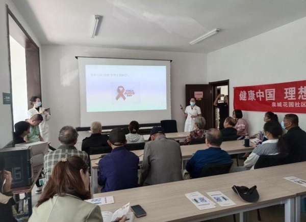 山东省济南市匡山街道欣苑社区开展预防艾滋病宣传活动