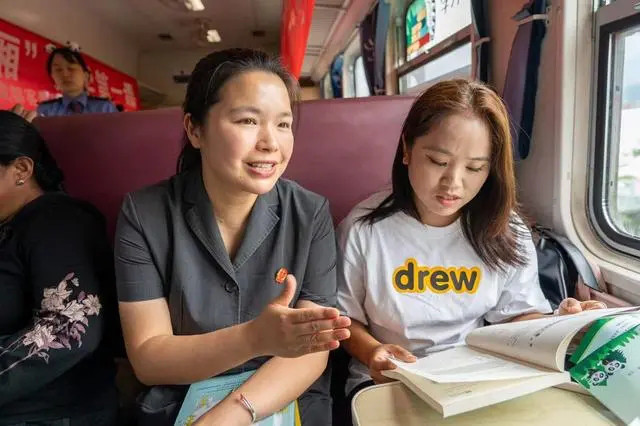 “列车上这些行为不可取……”“尊重和保护未成年人是每个公民的职责。”8月31日,在喜德开往西昌的5633次列车上,成铁第二运输法院联合成都客运段,利用学生开学返校时间,以青少年学生为主要普法受众人群,开展普法宣传。