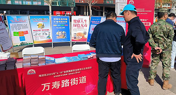 为认真落实禁毒工作部署,响应区禁毒办工作精神,2025年4月15日上午,海淀区公安分局和万寿路街道在五棵松华熙商业中心广场,共同举办2025年度“4.15全国安全教育日”及禁毒宣传活动。