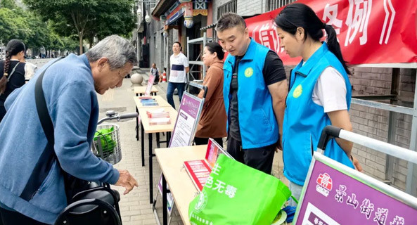 为进一步加大禁毒宣传力度,近日,海淀区永定路街道平安建设办公室联合团(工)委在六街坊社区花园开展以“健康人生、绿色无毒”为主题的禁毒宣传活动。