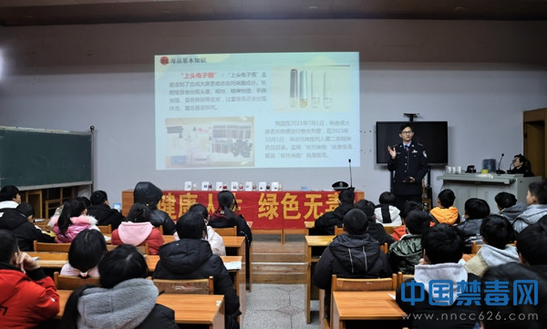 1月25日,江西省赣州市宁都县公安局禁毒大队民辅警走进宁都第二中学开展禁毒教育宣传,上好寒假前最后一堂禁毒课。期间,禁毒民警结合PPT课件向学生科普禁毒知识,讲解涉毒相关法律法规,特别是结合具体案例,深入浅出地讲解了“什么是上头电子烟”…