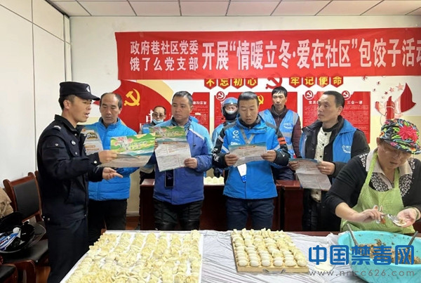11月8日,宁夏固原市原州区禁毒办联合政府巷社区党委,开展以“浓浓饺子情 禁毒践我行”为主题的禁毒宣传活动。活动由禁毒专干、社区工作者、外卖员及居民共同参与。