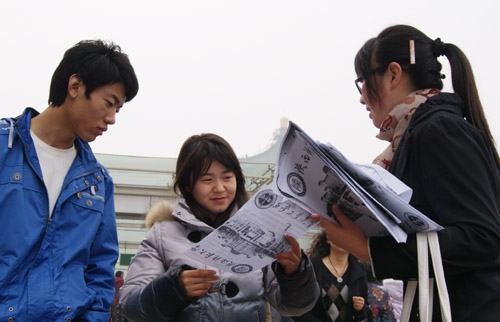 西安:大学生上街宣传防艾知识