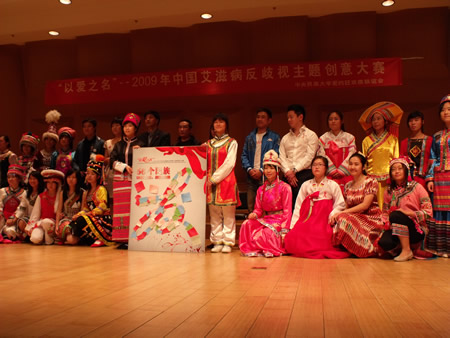 2009年10月28日晚,中央民族大学青春红丝带组织举办了“以爱之名,颂爱永恒——中央民族大学爱的狂欢夜”大型交流会。本次交流会也是“以爱之名”—2009年中国艾滋反歧视主题创意大赛作品征集大赛的结束会。中国疾病预防控制中心副主任刘中夫、联合国艾滋病规划署中国亲善大使央视主持人周柳建成、中央民族大学校领导、艾滋病感染者和助艾人士出席了本次交流会,北京各大高校预防艾滋病青年志愿者代表也参加其中。