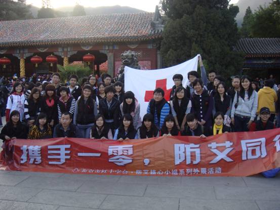 2010年10月30日,北京市红十字会防艾核心小组(以下简称小组)在香山开展了第三届“红遍香山”预防艾滋病外展活动。此次活动共有33名来自10所高校的志愿者、6名小组成员参加,他们在曲折中向815名游客分享了防艾核心知识,并收集了108条防艾标语或祝福语。