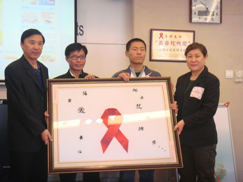 2010年10月28日上午,昌平区疾控中心工作人员及中国石油大学的学生代表把亲手绣制的红丝带十字绣图赠送给北京地坛医院“红丝带之家”。