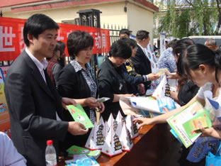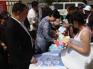 为落实农村艾滋病防治知识宣传教育工作,顺利完成本年度农村居民艾滋病知识水平达到85%的工作要求, 5月10日,以“世界红十字日”宣传周为契机,顺义区疾控中心与区红十字会联合开展宣传活动,将艾滋病防控知识送到前来张镇大集置办农副产品的农村居民中间。宣传活动现场以悬挂条幅、展示展板、发放多种宣传折页、海报、小礼品等形式为主,通过免费测量血压和现场咨询等方式吸引众多群众纷纷驻足,争相领取宣传品并接受艾滋病防控知识介绍。宣传活动历时2小时,顺义区政府燕瑛副区长、区卫生局单德智局长参加活动并与工作人员一同发放宣传折页及手册近千余份,安全套100支。