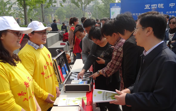 5月4日上午,首都高校青春红丝带社团工作领导小组办公室(北京市青少年法律与心理咨询服务中心)组织中国地质大学、北京联合大学、北京城市学院志愿者来到北京市西城区金融街,开展“青春红丝带”——进社区 进企业 进工地防艾宣传教育活动。