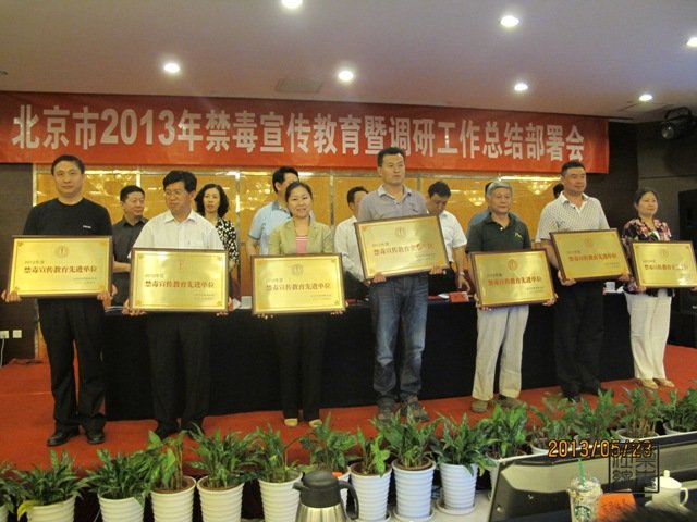 会上,北京市禁毒教育基地被市禁毒委授予2012年度禁毒宣传教育先进单位称号,北京市禁毒教育基地教育培训部部长刘飒荣获北京市2012年禁毒宣传教育先进个人称号。