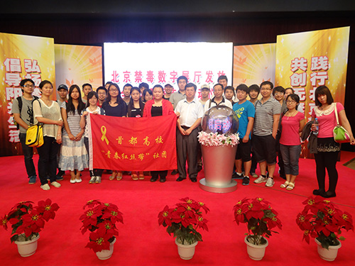 首都高校“青春红丝带”社团志愿者在活动现场合影