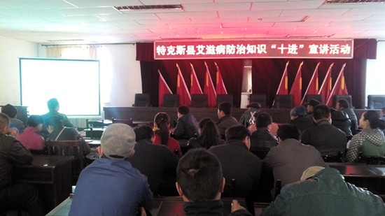 3月24日,喀拉托海乡在政府四楼会议室组织开展了特克斯县艾滋病防治知识“十进”宣传活动,全乡机关、站所及各农牧业村协警在内的50余人参加宣讲会。会议由党委委员、武装部长赵斌主持。