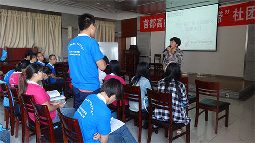 培训活动邀请了北京地坛医院王克荣护士长结合北京市艾滋病流行形势及自己一线工作的经验,为高校社团负责人进行了艾滋病防治知识专题讲座;首都高校“青春红丝带”社团工作领导小组办公室副主任许建农针对2014年首都高校青春红丝带社团工作计划进行了详细解读,并针对高校防艾宣传教育工作的特点,进行了下半年工作指导;项目主管张红就近期重点工作进行了部署,并针对红丝带社团管理进行了专项技能培训;红丝带社团资深志愿者费思宇带领各负责人开展了团队建设及防艾同伴教育活动。各高校社团负责人现场观看了红丝带社团办公室最新制作的新生防艾一堂课专题动画片《大话艾滋》,并表示返校后将会把同伴教育活动与《大话艾滋》专题动画片相结合,开展系列新生防艾宣传活动。