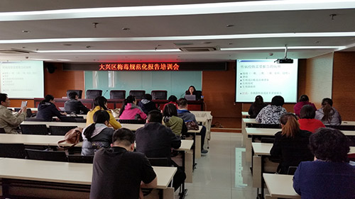 根据卫生部《性病防治管理办法》(卫生部令第89号)、《关于印发中国预防与控制梅毒规划(2010-2020年)的通知》(卫疾控发[2010]52号)等文件精神,结合2015年梅毒规划中期评估要求,大兴区疾控中心于2015年4月2日召开了全区梅毒规范化报告培训会,辖区内26家医疗机构共计35人参加了此次会议。