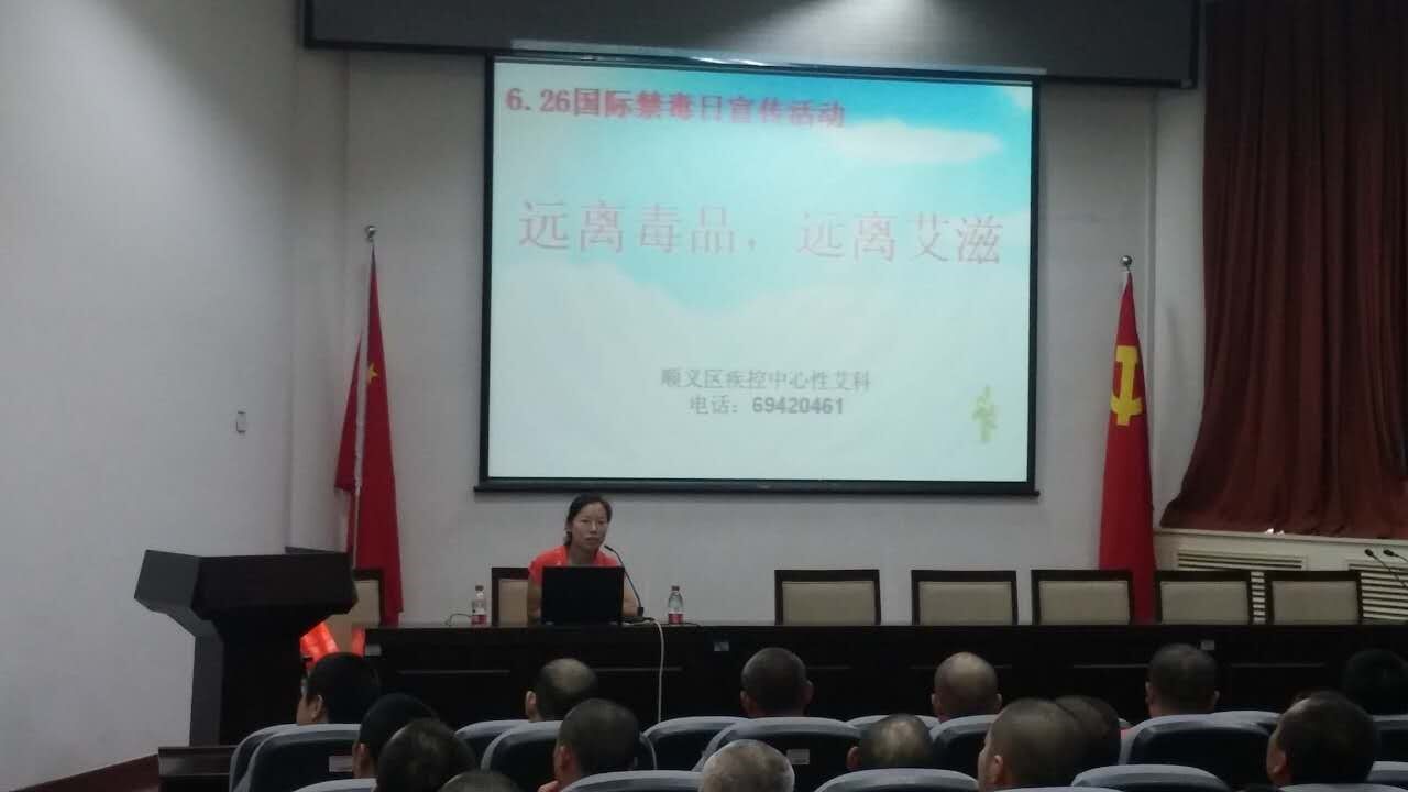 在“6.26国际禁毒日”即将来临之际,为加强戒毒人员的艾滋病宣传教育,6月17日,顺义区疾控中心联合北京市公安局强制治疗管理处隔离戒毒中心 在其电教室举办了主题为“远离毒品,远离艾滋”的禁毒与防艾知识讲座。区疾控中心专业人员利用多媒体教材,对毒品的分类、吸毒的危害、艾滋病的疫情形势、 传染途径、临床表现、预防措施等进行了深入浅出的讲解,同时围绕生活中可能遇到的有关艾滋病的问题进行了现场答疑,课堂气氛活跃融洽。讲座结束后,戒毒人 员还参观了 “大话艾滋”主题漫画宣传片。通过此次讲座,使戒毒人员对毒品、艾滋病常识有了进一步的了解和认识,提高了其对艾滋病的自我防护能力,真正做到“远离毒 品,远离艾滋”,共建无毒的和谐社会。