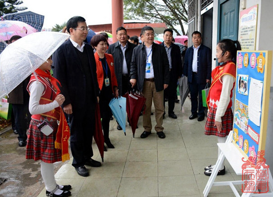 图为参加广西青少年毒品预防教育“6·27”工程推荐会的代表在参观桂林市英才小学禁毒展览