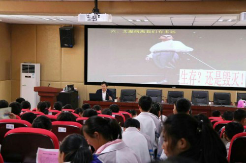 018年4月19日,巴中市疾控中心王志龙科长,巴中市家庭教育学会邱树才,特聘专家郭春燕老师,来到巴中市巴州区化成职业中学,向全体师生作了“珍爱生命,拒绝毒品,防艾共担,共享健康”的专题教育讲座。
