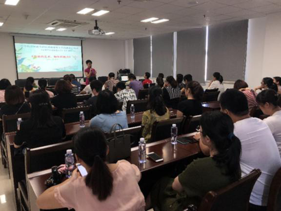 图为资深心理咨询师张琳珍讲课