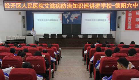 最后,刘医生告诉同学们:“你们是祖国的未来,是迎战艾滋病的生力军,抵御艾滋病是我们每一位同学义不容辞的重大重任,因此大家行动起来,从自我做起远离艾滋病,宣传艾滋病相关知识,对自己行为负责,提高防范意识,拒绝歧视冷漠,为预防及控制艾滋病做最大贡献。”