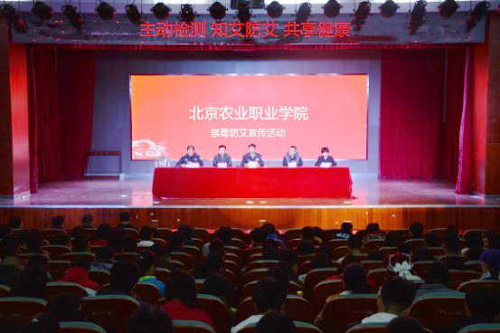 2018年11月6日下午,房山区禁毒办、房山区疾病预防控制中心、长阳镇政府、长阳派出所及校保卫处、学生处在北京农业职业学院联合组织开展“主动检测,知艾防艾,共享健康”为主题的禁毒防艾宣传教育活动。