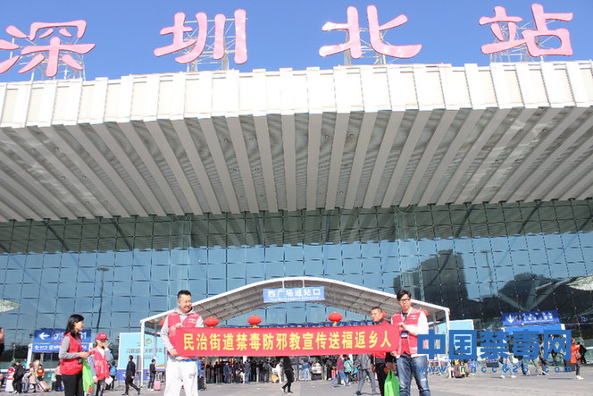 中国禁毒网讯(通讯员 赖权玲)近日,深圳市龙华区民治街道结合深圳北站综合交通枢纽春运日均客流达到68万左右高峰值的特点,在辖区范围内积极开展“送福返乡、平安是福”平安宣传活动。