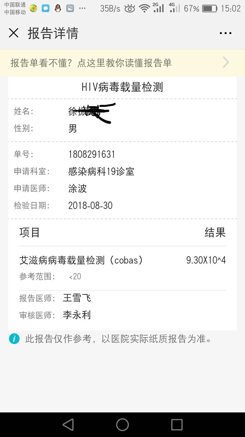 这不是个个例:一位中国重庆的艾滋病患者在北京中美联合医院服用(艾滋1号)六个月后艾滋病病毒载量转阴,现己随访患者五年没有复发。