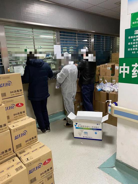 志愿者在医院领药。图/受访者提供
