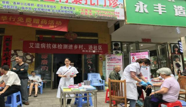 图为疾控中心在社区和乡村开展艾滋病抗体检测活动现场