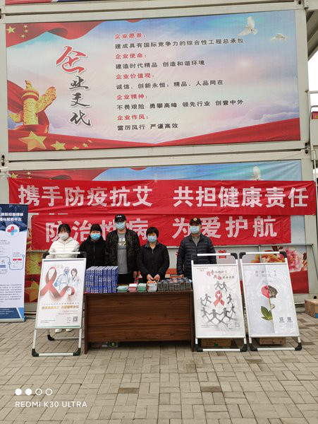 鉴于目前新冠疫情防控形式,宣传活动分批进行,施工方有序安排各工种工人错时前往活动现场。工作人员重点介绍了性病、艾滋病的危害与预防知识,强调了安全套在预防疾病中的重要作用,推广了国家性病防治新媒体“携手医防”和北京市性艾协会“HIV匿名传递检测与自检”项目。同时开展了识毒、拒毒的宣传动员。倡导大家要建立积极向上的价值观,拒绝高危行为,并将学到的知识传播给身边的人,共同创建绿色、和谐的生活环境。