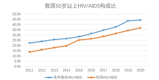 随着生活质量提高,中老年人性活跃期延长,老年男性由于性需求往往不被家庭和社会所正视等原因,易引发嫖娼等不安全性行为,流行病学研究显示,这也是50岁及以上人群艾滋病传播和流行的主要原因;另外,基于抗病毒治疗药物不断发展,艾滋病病毒感染者及病人可长期生存。