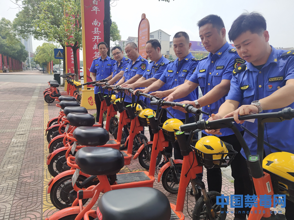 中国禁毒网讯(通讯员周双 陈颖) 近日,湖南省南县城市管理和综合执法局抓住共享电单车使用人群广泛、地域流动大的特点,加紧印制了500余份醒目的禁毒宣传标语贴纸组织工作人员贴在共享电单车的车把手上,鼓励广大市民在绿色出行的同时参与禁毒宣传,共同倡导践行“健康人生、绿色无毒”的生活理念。