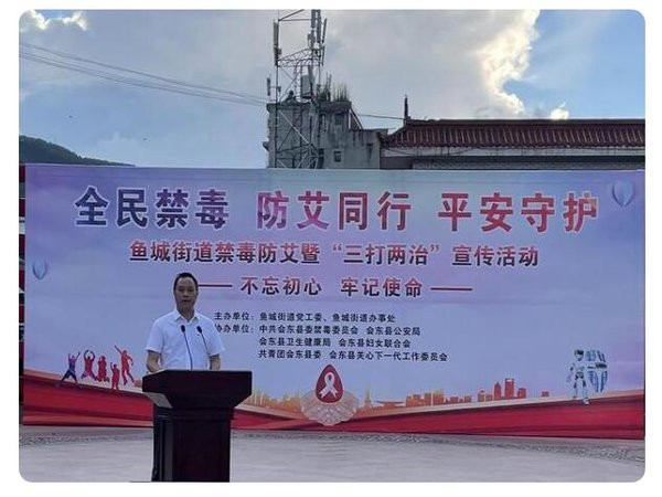 7月22日,会东县开展以“全民禁毒、防艾同行、平安守护”为主题的禁毒防艾暨“三打两治”宣传活动,副县长、公安局长张祥斌出席活动并致辞。县禁毒委、县卫生健康局、团县委、县妇联、县关工委等单位领导参加活动。