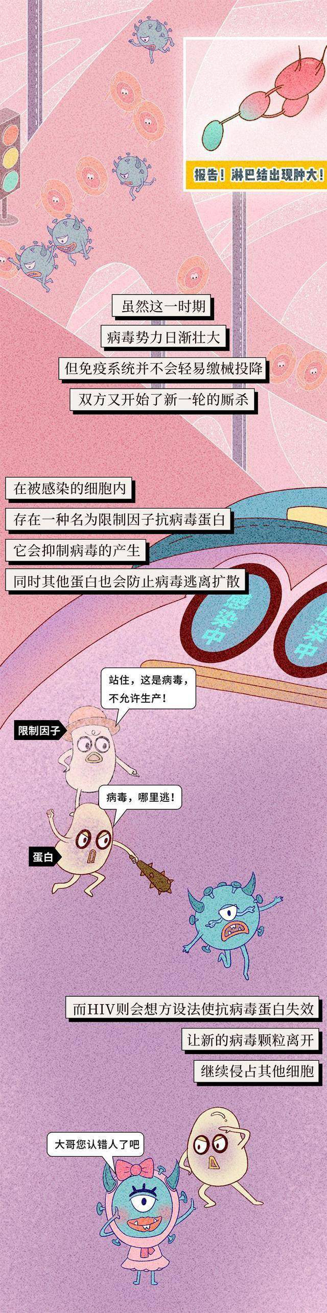 进入身体之后,主要损伤淋巴细胞中的CD4细胞和吞噬细胞,造成身体抵抗力下降,然后就容易出现各种机会性的感染,出现肿瘤。