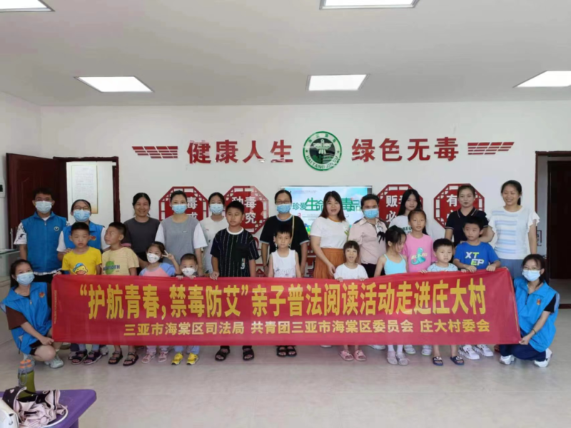 为引导亲子家庭认识毒品带来的危害,学习预防和抵制毒品的措施和方法,提高抵御毒品的能力,在三亚市海棠区司法局、共青团三亚市海棠区委员会的指导下,海棠区青年之家禁毒社工于7月22日上午在庄大村委会开展“护航青春,禁毒防艾”亲子普法阅读活动。