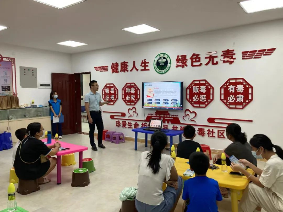 接着,由海棠区司法局工作人员以PPT的方式,结合真实案例,深入浅出地向在场的父母和孩子讲解毒品的种类、危害以及青少年怎样预防毒品,让小朋友和家长们深刻认识到了毒品对个人、家庭及社会的严重危害。