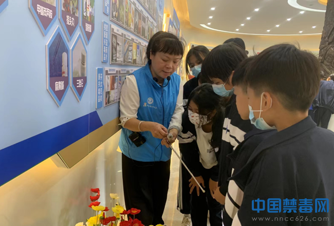 禁毒督导员结合禁毒教育基地展厅中的禁毒历史、当今毒情形势、毒品种类、如何预防毒品等方面内容,为学生进行详细讲解。学生通过参观各种毒品仿真模型、毒品知识展板,深刻地认识到毒品的严重危害性。