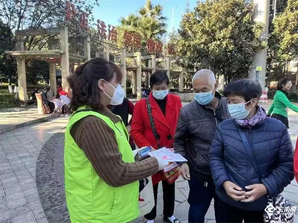 12月8日,12名网格员在金马寺小广场悬挂宣传布标、发放防艾宣传册及宣传袋、避孕药具等,并将网格化管理知识融入宣传活动。社区网格员们耐心细致向在场居民讲解什么是艾滋病、艾滋病的传播途径、感染症状。