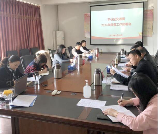 平谷区交通局组织召开禁毒工作部署会,研究本系统2023年禁毒工作。会议要求:一是要提高政治站位,高度重视禁毒工作,认真贯彻落实平谷区禁毒办各项工作要求,长期、有序、扎实开展交通运输领域禁毒工作。二是要抓好公共交通领域从业人员的审核把关,督促企业掌握员工有无吸毒等违法行为,同时利用培训会议、员工例会等方式开展禁毒教育活动。三是要抓好交通局内部禁毒宣传工作,充分利用微信公众号、“科长大讲堂”等载体,积极开展禁毒宣传教育,提高干部职工的禁毒意识。