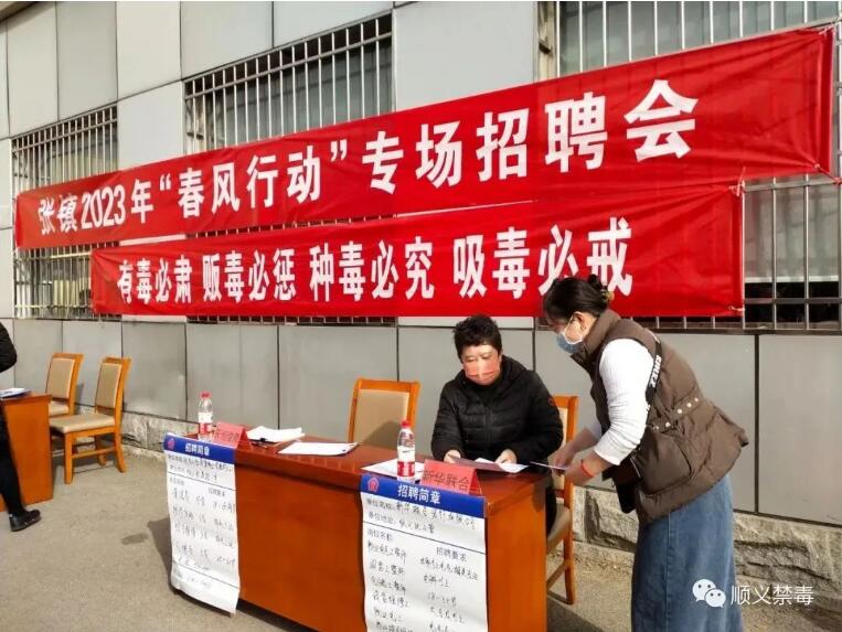 张镇禁毒工作领导小组联合镇党群办以“‘春风行动’专场招聘会”为契机开展禁毒宣传活动,工作人员在现场悬挂禁毒宣传横幅,向招聘工作人员和求职人员发放宣传册和宣传品,动员大家学习《北京市禁毒条例》等禁毒法律法规,为大家讲解毒品的危害等禁毒知识,使“有毒必肃、贩毒必惩、种毒必究、吸毒必戒”理念更加深入人心,切实增强了广大群众的禁毒意识。