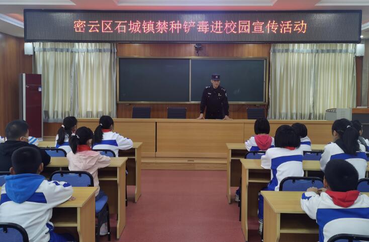 为进一步强化校园毒品预防教育工作,发挥学校教育主阵地作用,切实增强青少年抵制毒品侵害的能力和自我防范意识,石城镇平安建设办、司法所、派出所、安全科一起走进石城镇中心小学,开展以“禁种铲毒宣传进校园,让毒品远离青春“为主题的禁毒宣传活动,将禁毒宣传推向纵深,在校园内营造了人人参与禁毒工作的良好氛围。