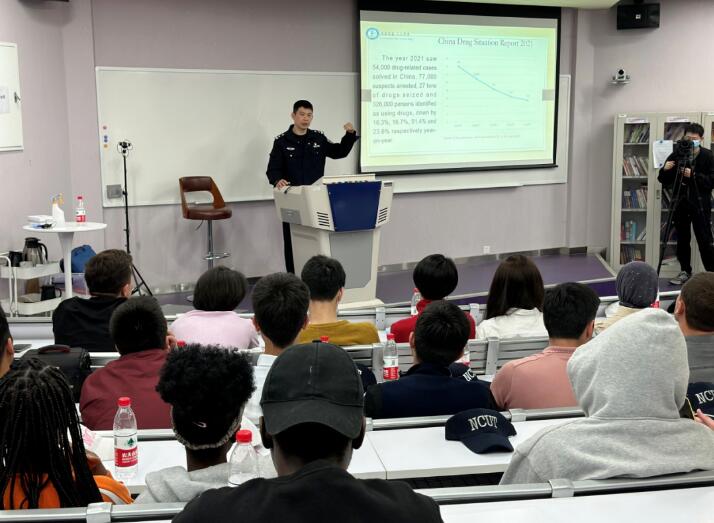 石景山区禁毒办联合北方工业大学国际学院组织在校留学生开展禁毒普法知识讲座活动,北京天康戒毒所警官使用全英文课件为留学生们介绍了我国的禁毒法律法规及相关禁毒知识,强调了涉毒违法行为的严重后果,切实增强了广大留学生的拒毒意识和防毒能力。