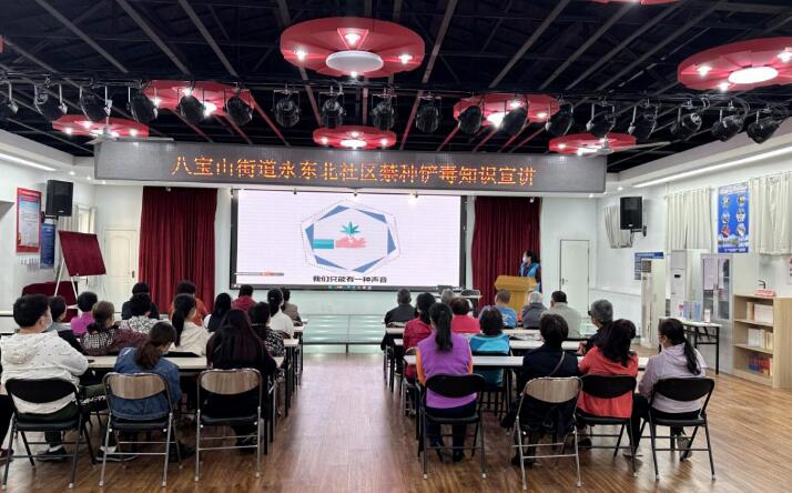 八宝山街道走进永东北社区开展禁种铲毒知识宣传活动。工作人员为参加活动的群众发放禁毒宣传资料、播放禁毒宣传片,让在场居民认识了毒品原植物,尤其是野生大麻;组织居民参观仿真毒品模型、禁毒展板,使大家进一步认识到了毒品的危害,坚定了远离毒品的决心。