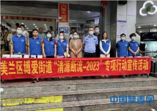 中国禁毒网讯(通讯员 王维绅)为进一步贯彻落实上级公安机关关于禁毒工作的部署要求,扎实推进禁毒“清源断流-2023”专项行动工作,5月8日,海南省海口市美兰区博爱街道在辖区某超市门口开展“清源断流-2023”专项行动宣传教育活动。