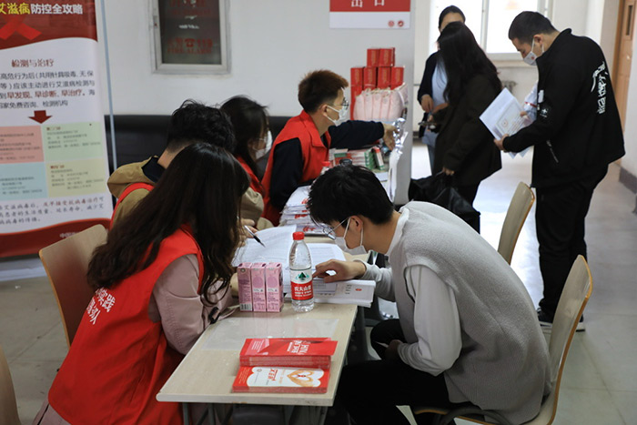 上午8时,校医院医护?员和研究?会?作?员?同在教学楼内开展现场宣传活动。本次宣传活动采?了防艾宣传册发放等多种形式,旨在向??师?们普及艾滋病的基本防治知识。