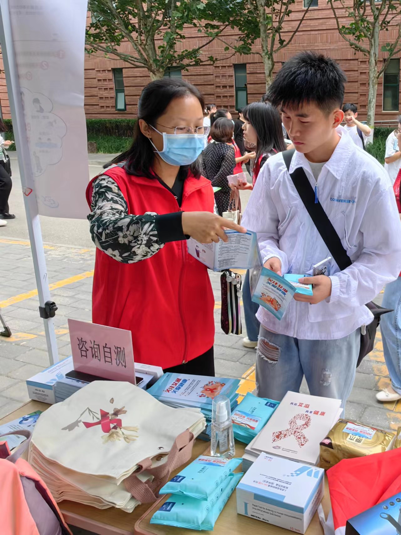 为进一步提高大学生人群艾滋病防控知识知晓率,落实卫生部门对高校的技术指导工作要求,2023年5月31日,北京市顺义区疾控中心联合高校“青春红丝带”社团开展了艾滋病防控宣传“进校园”活动。