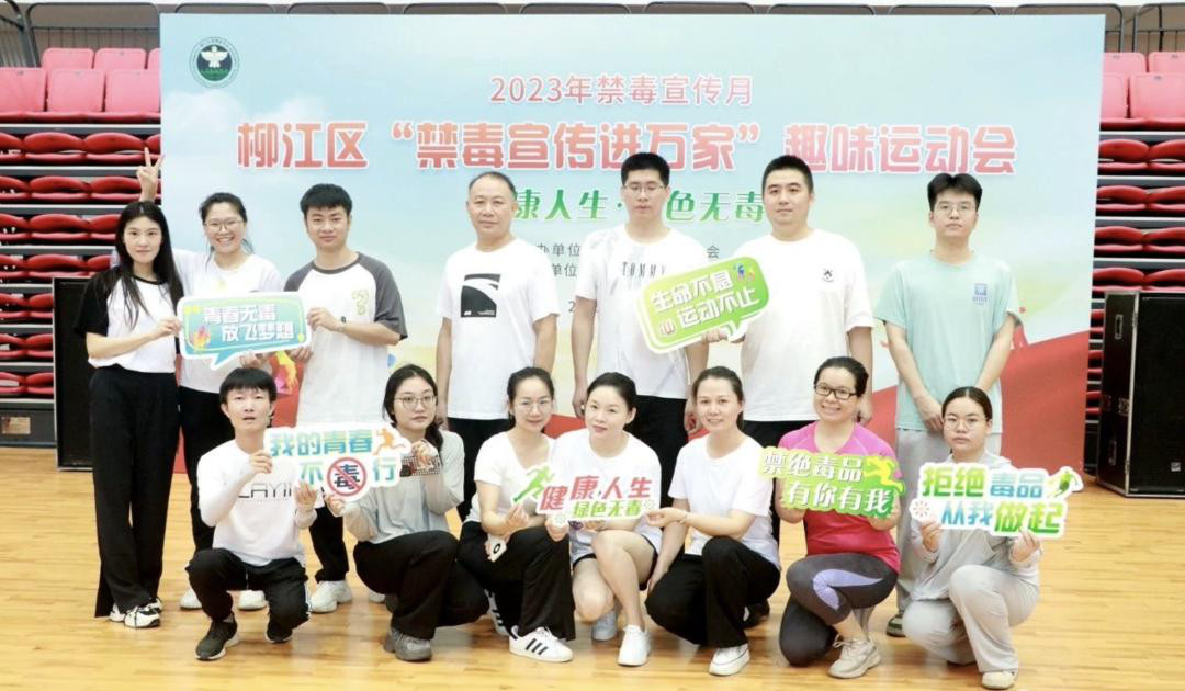 6月25日,2023年度柳江区禁毒宣传月“禁毒宣传进万家”趣味运动会在区体育公园室内篮球场举行。区委常委、政法委书记、区禁毒委常务副主任李培绿,副区长、市公安局柳江分局局长邓涛华出席活动。