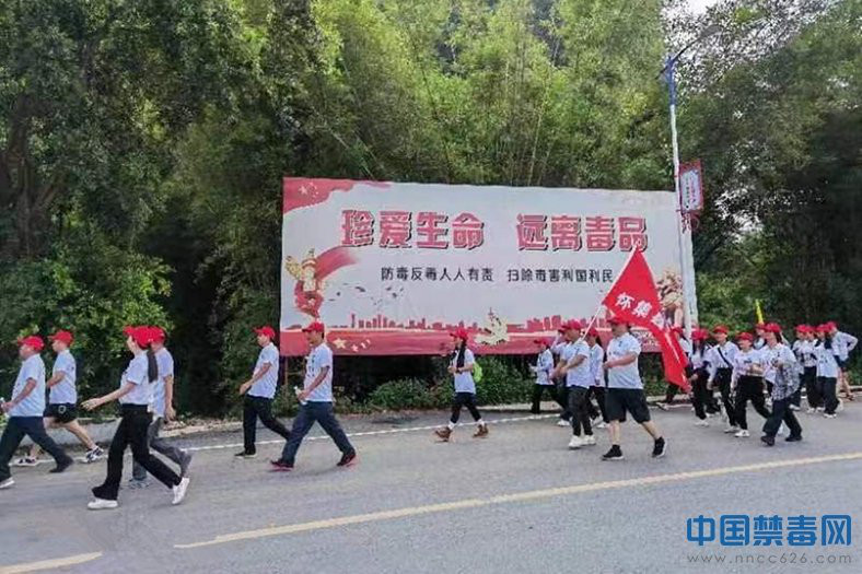当日上午,禁毒办宣传方队走在徒步行队伍的前列,从活动起点步行至及终点,宣传方队高呼“健康人生,绿色无毒”“行动起来,积极支持参与禁毒示范创建工作”等宣传口号,并向来往游客派发禁毒宣传资料,期间,工作人员现场解答群众关于禁毒的咨询。