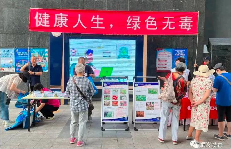 后沙峪镇禁毒工作领导小组联合镇工会及镇司法所在方塘商住小区开展以“健康人生 绿色无毒”为主题的禁毒宣传活动。工作人员通过发放禁毒宣传彩页、播放禁毒知识视频、摆放禁毒知识展板和仿真毒品模型、悬挂禁毒宣传横幅的形式,向广大群众普及了毒品的概念、毒品的种类、毒品的危害、如何防范新型毒品等知识,引导大家构筑牢固的思想与行为防线,养成健康文明的生活方式,坚决远离毒品,营造了全民禁毒的良好氛围。